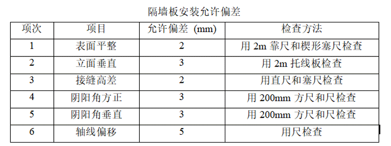 隔墻板安裝允許偏差